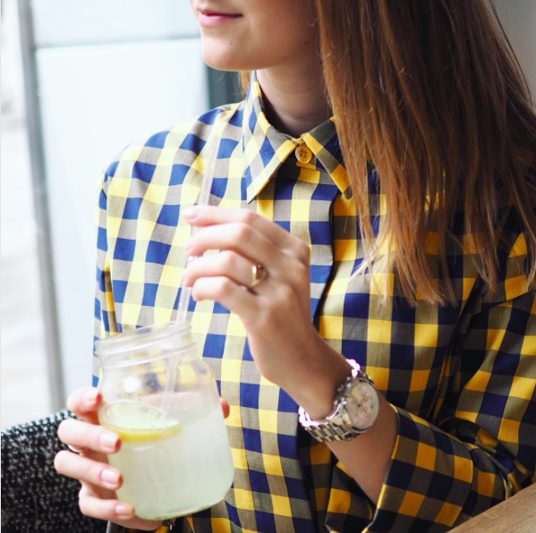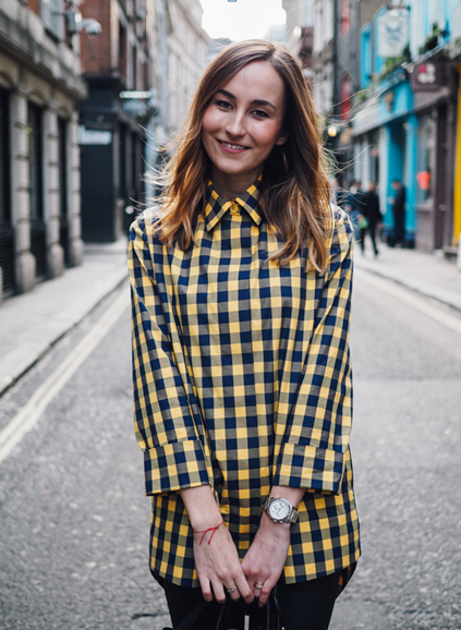 Collar checkered shirt with 3/4 sleeves, pockets, 100% cotton