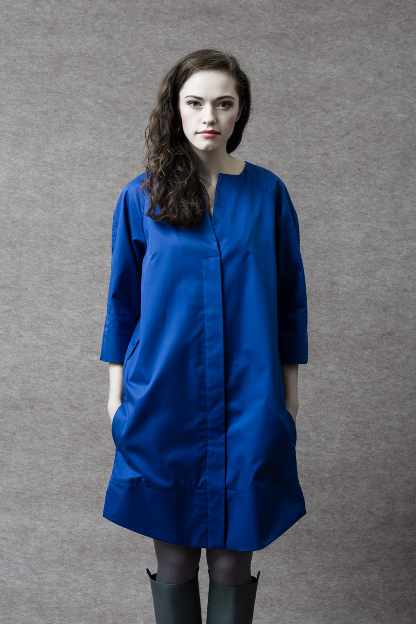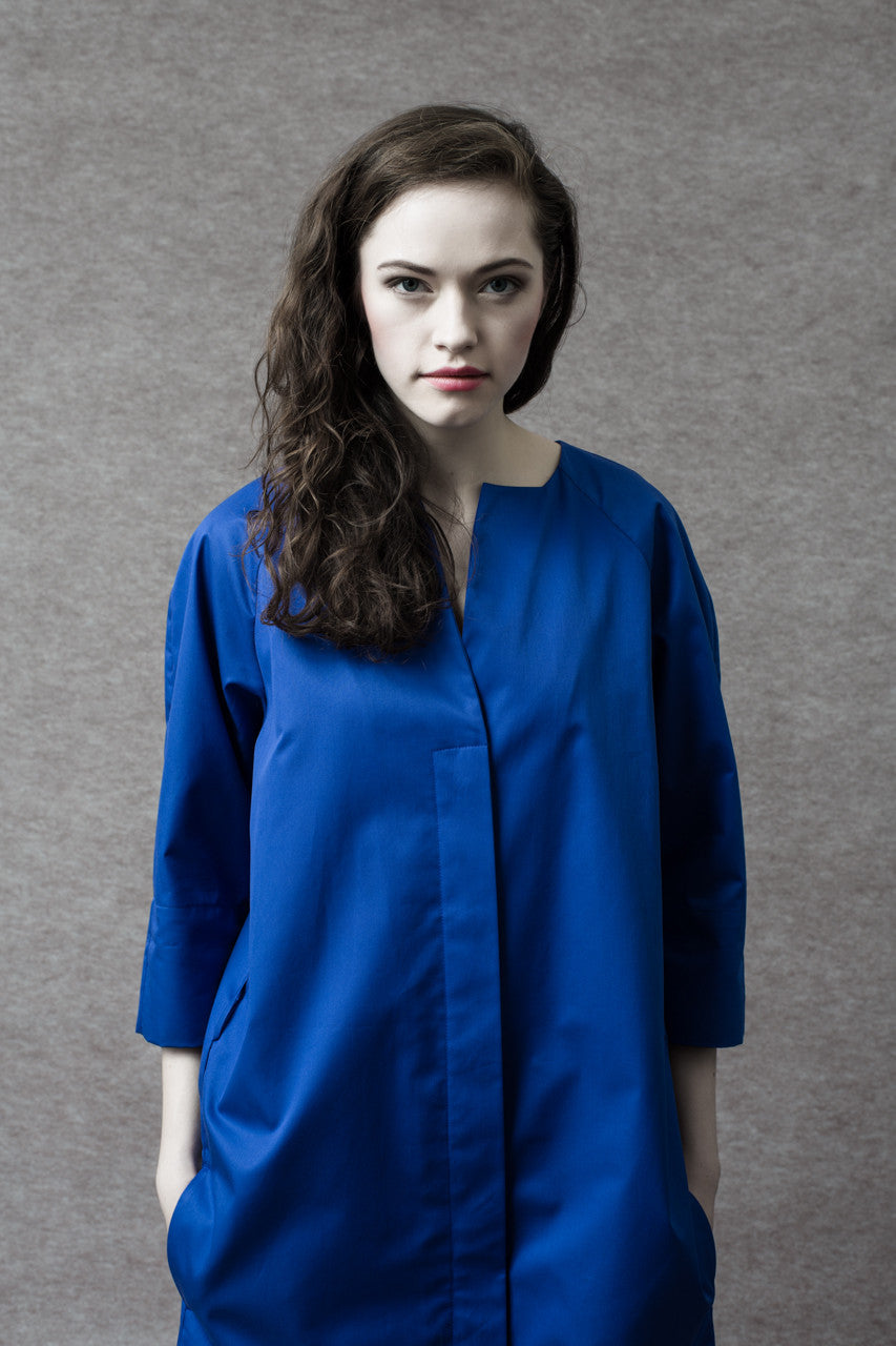 Hidden button shirt dress with 3/4 sleeves, pockets, 100% cotton