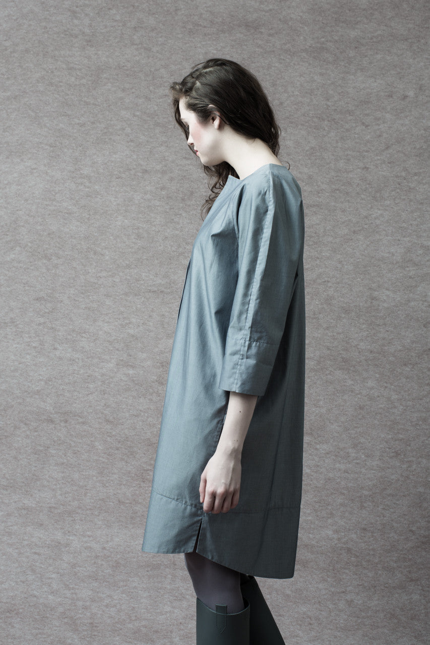 Hidden button shirt dress with 3/4 sleeves, pockets, 100% cotton