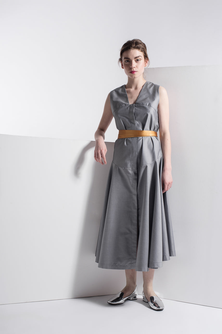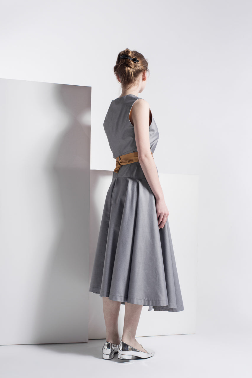 Summer button-down dress with a large skirt and a contrast belt.