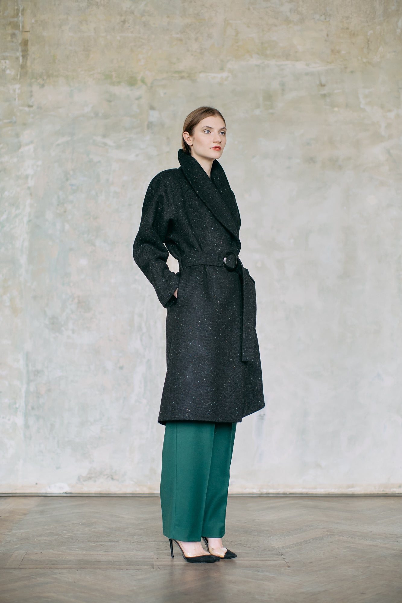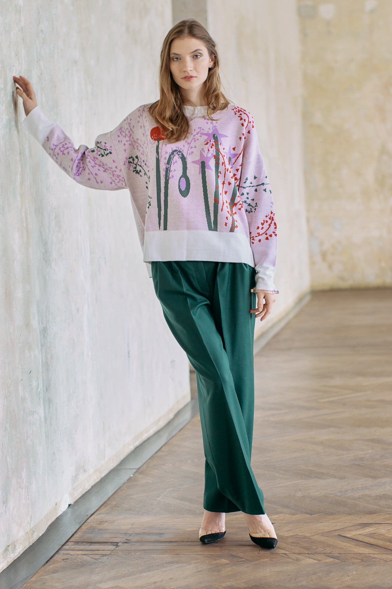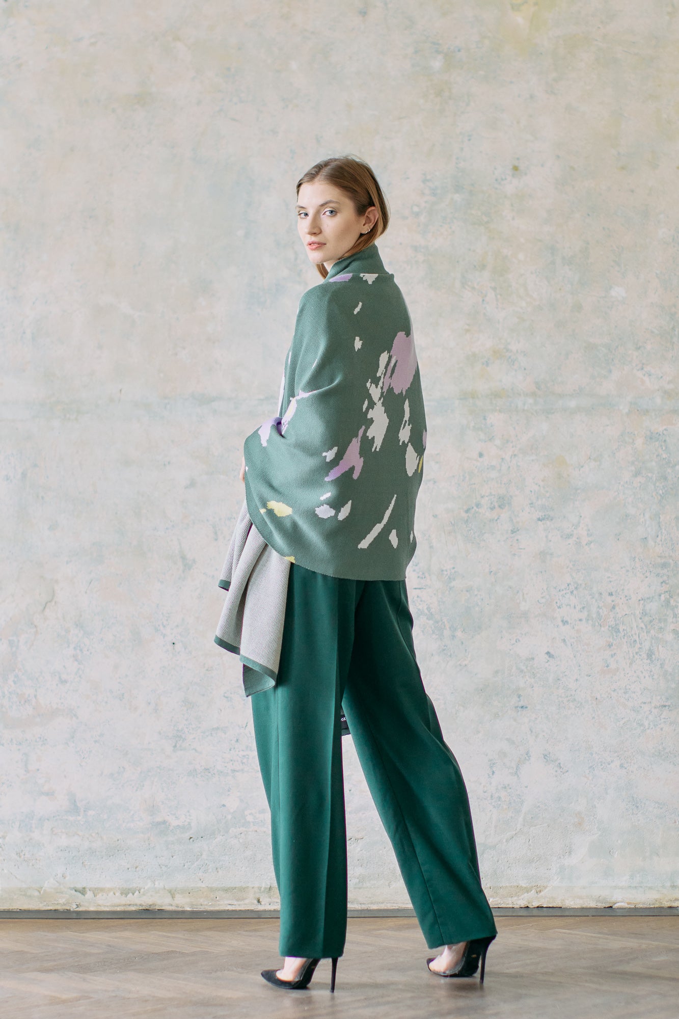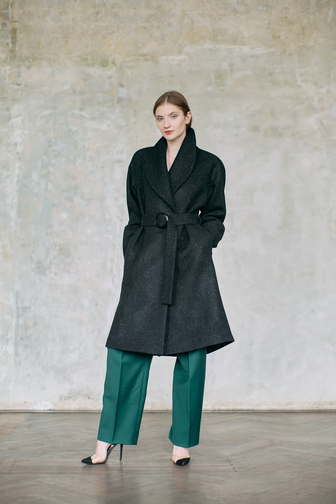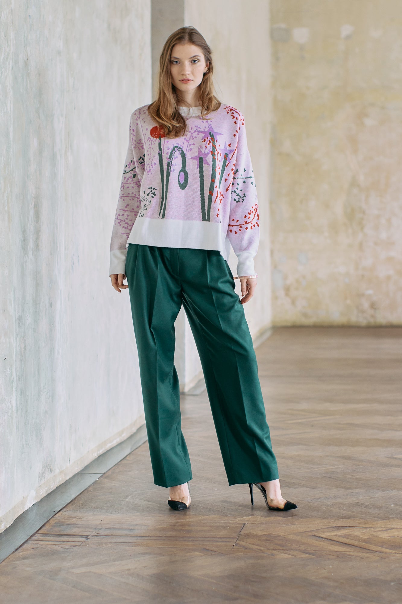 Green wide-leg pants with pockets, 100% Wool®Flannel. We offer soft and warm Italian flannel in other color variations, and we make the pants according to your measurements and size.