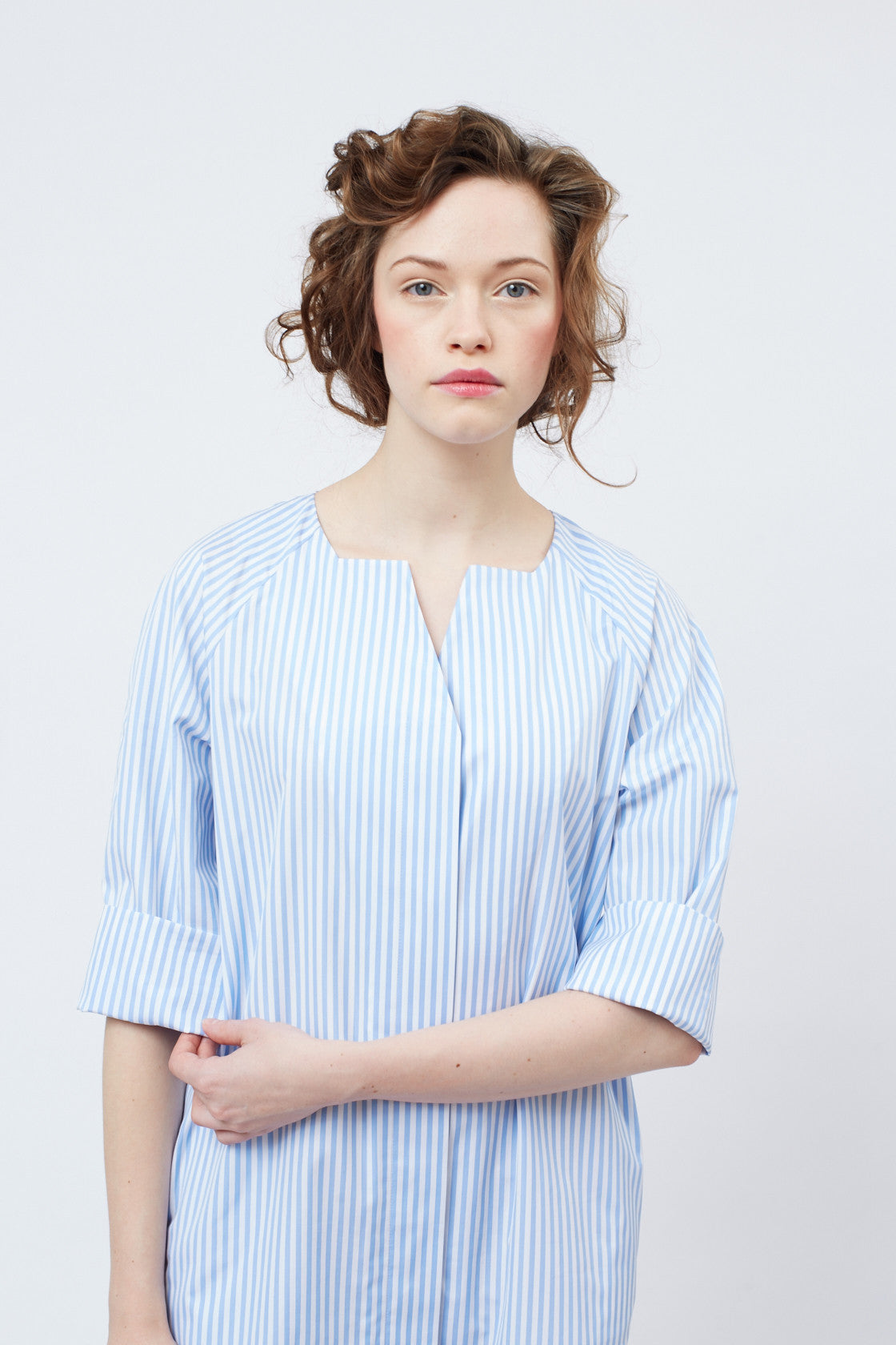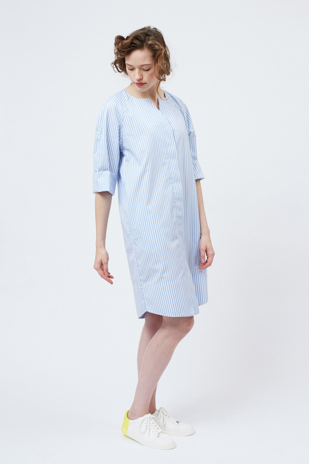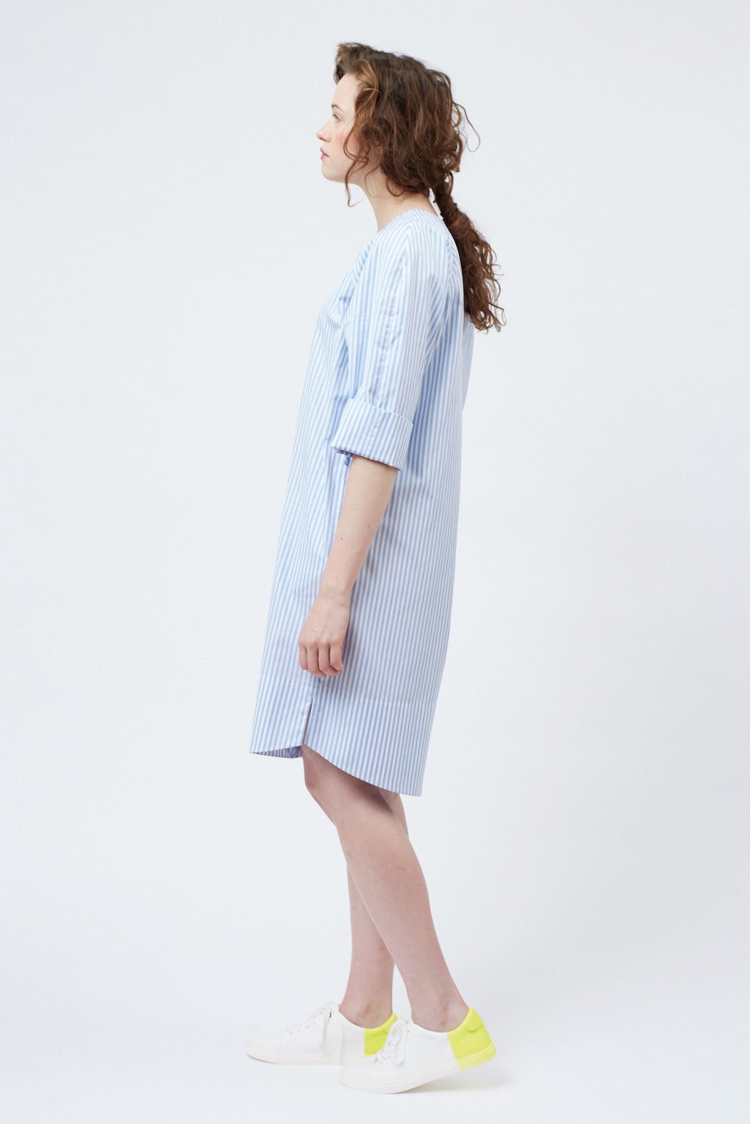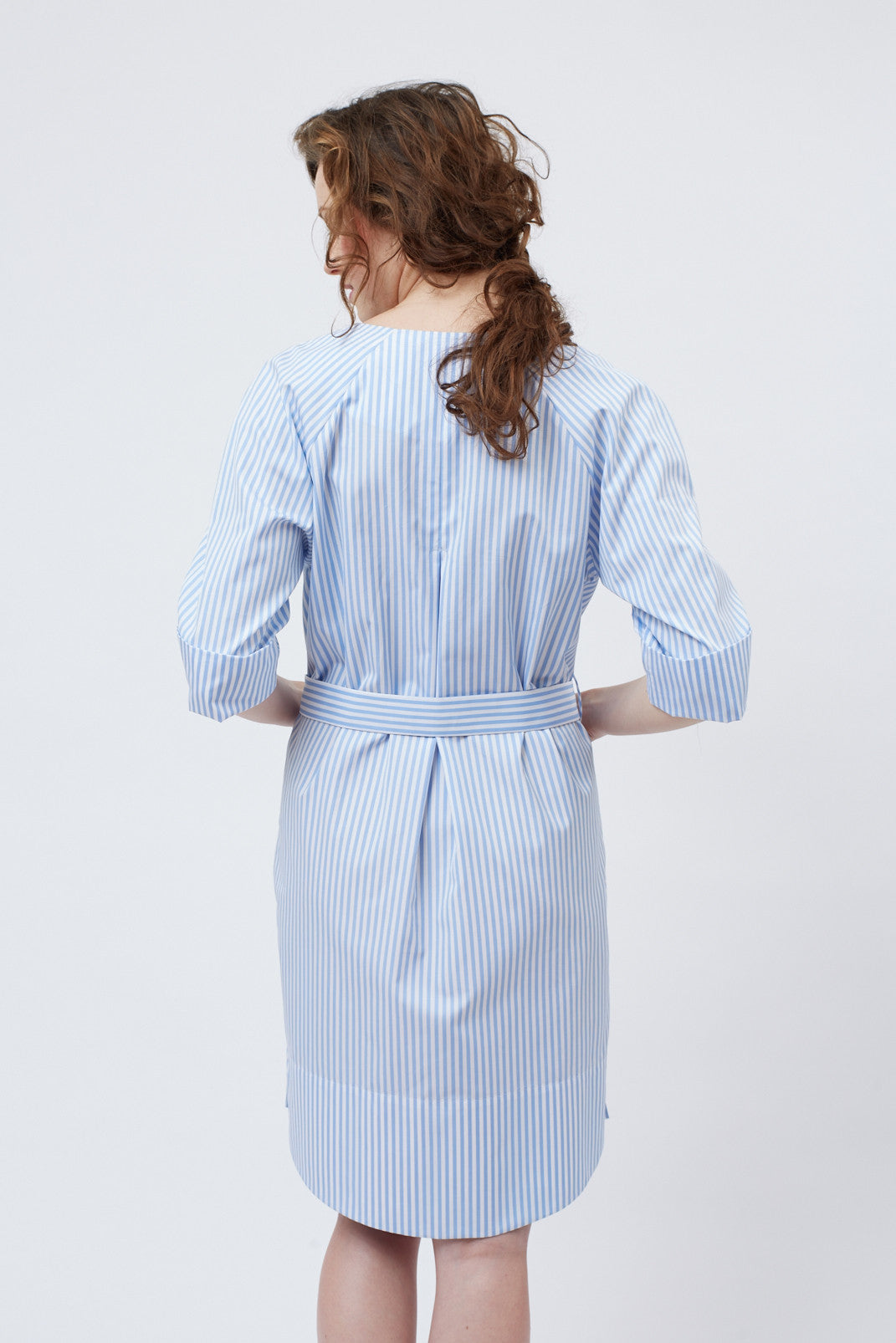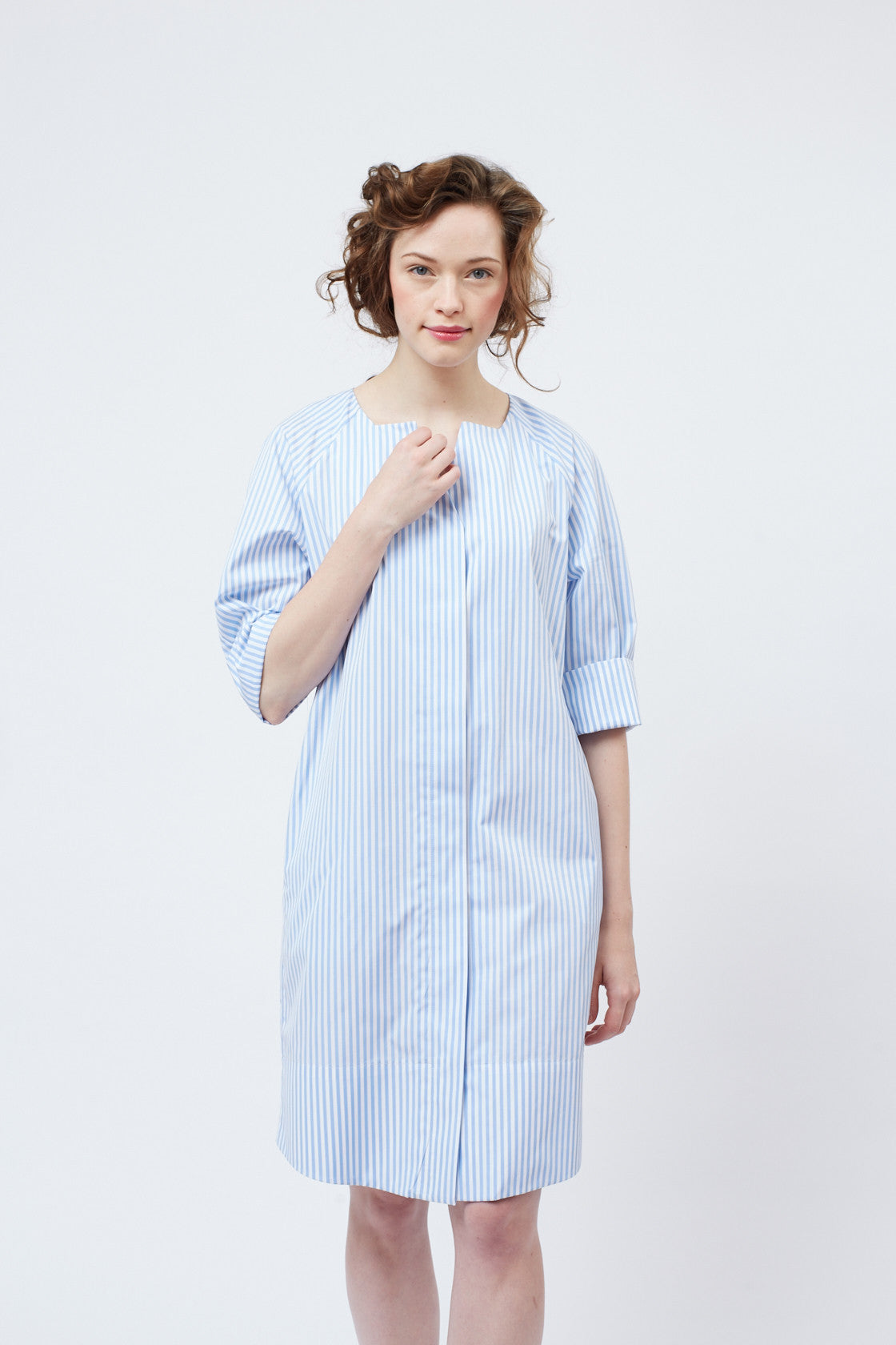 Hidden button shirt dress with 3/4 sleeves, pockets, 100% cotton, poplin