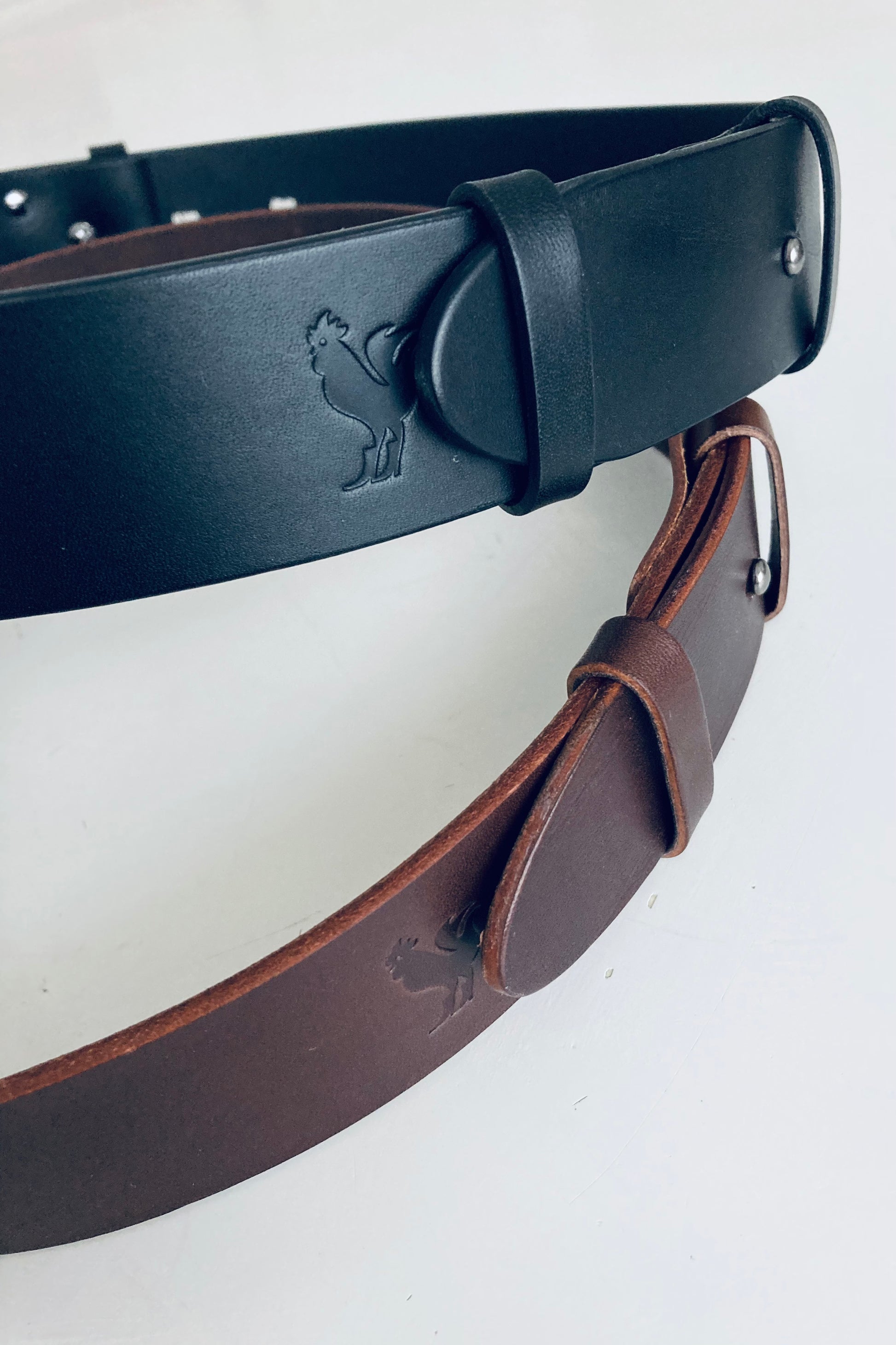 Dámský kožený pásek vznikl ve spolupráci s pražským Brašnářstvím Tlustý a spol. Univerzální opasek bez zbytečně nápadných spon, navržený značkou Cockerel a vyhotovený firmou Tlustý, tvoří nezbytný detail pletených plédů, maxi šatů a vlněných kabátů. Jedinečná kvalita pravé italské kůže v kombinaci s čistým kohoutím designem a prvotřídním vypracováním dává vzniknout ušlechtilému produktu, který se stane nutným doplňkem a užitečným pomocníkem při doladění vašeho vlněného outfitu. Zhotoveno ve dvou barevných variantách černá x hnědá.