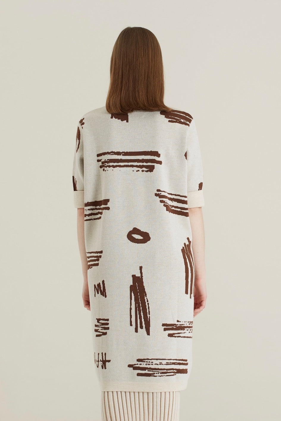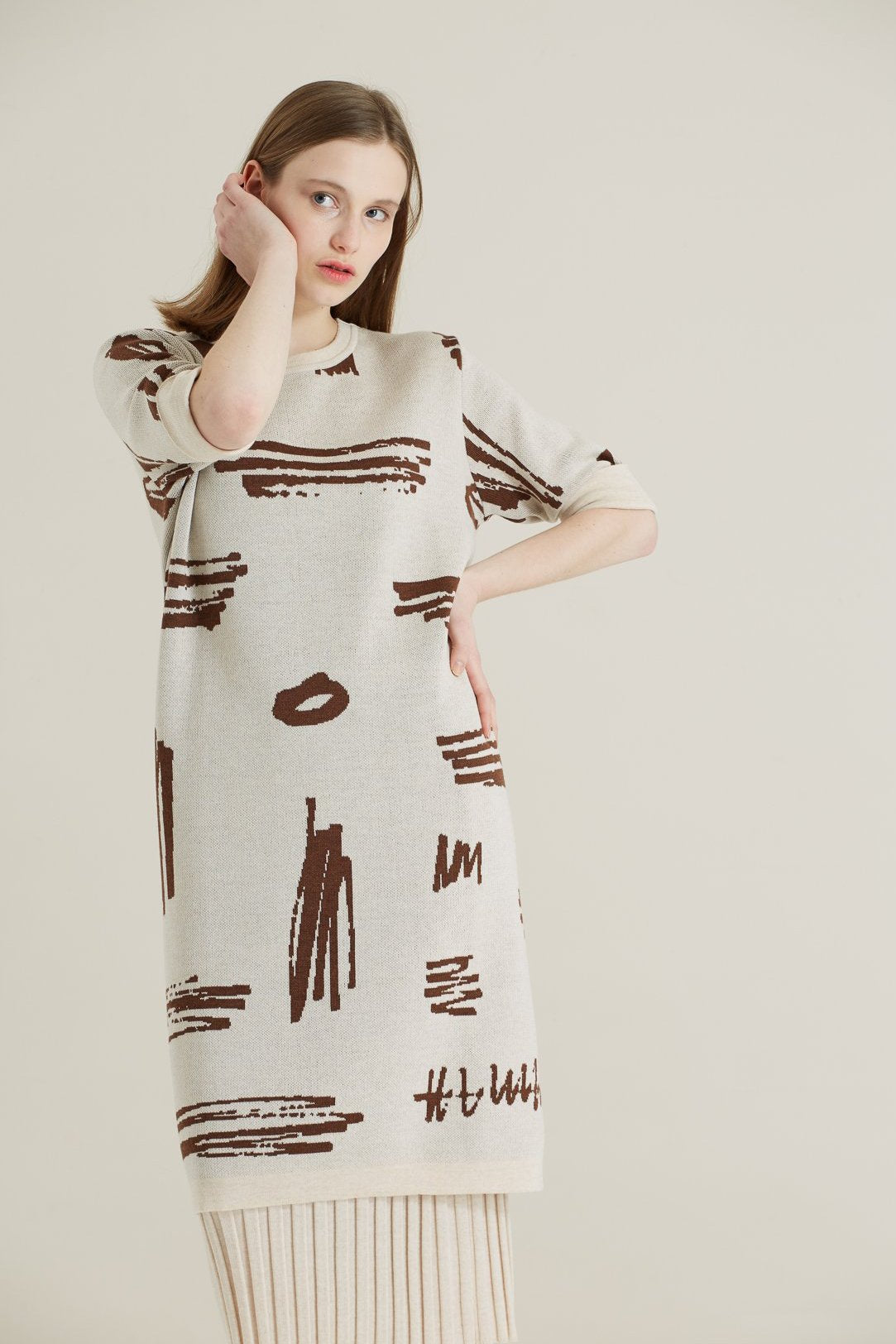 Knitted hand-drawn dress,100% Merino Cashwool ®