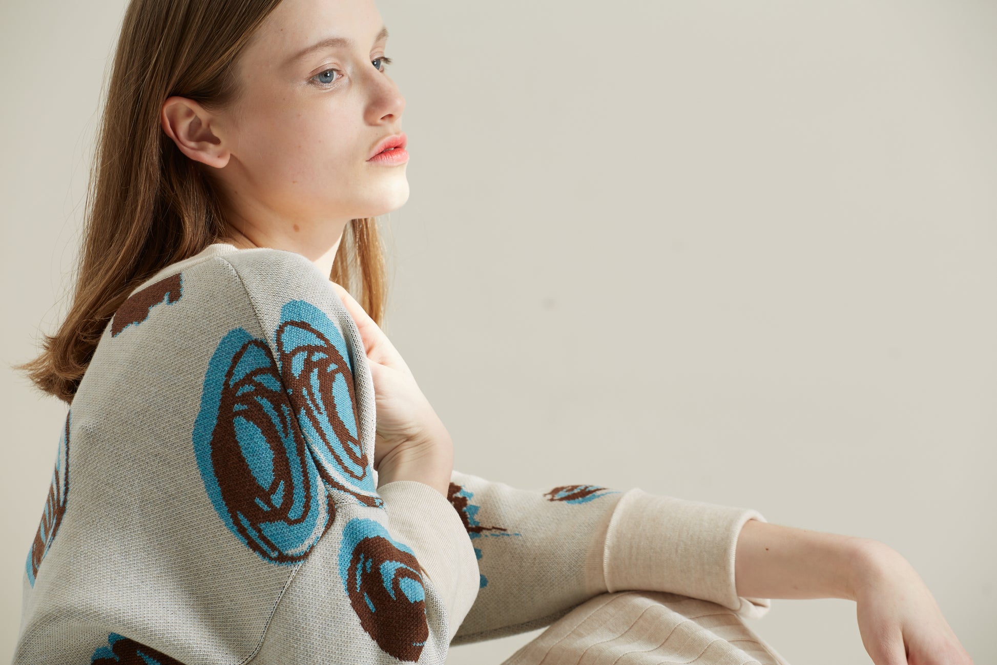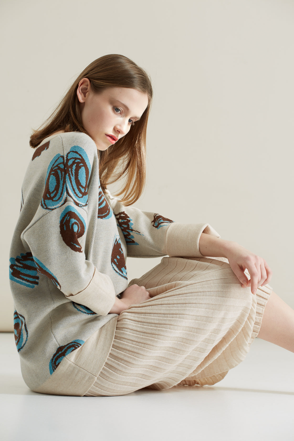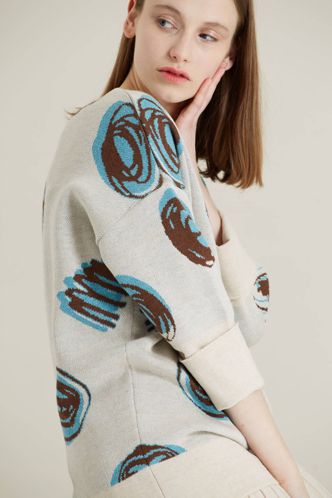 Knitted hand-drawn jumper,100% Merino Cashwool ®
