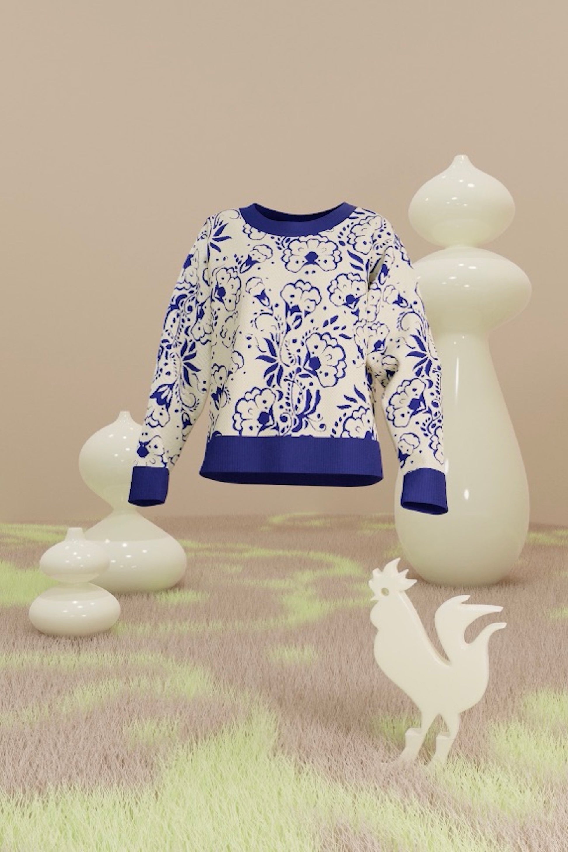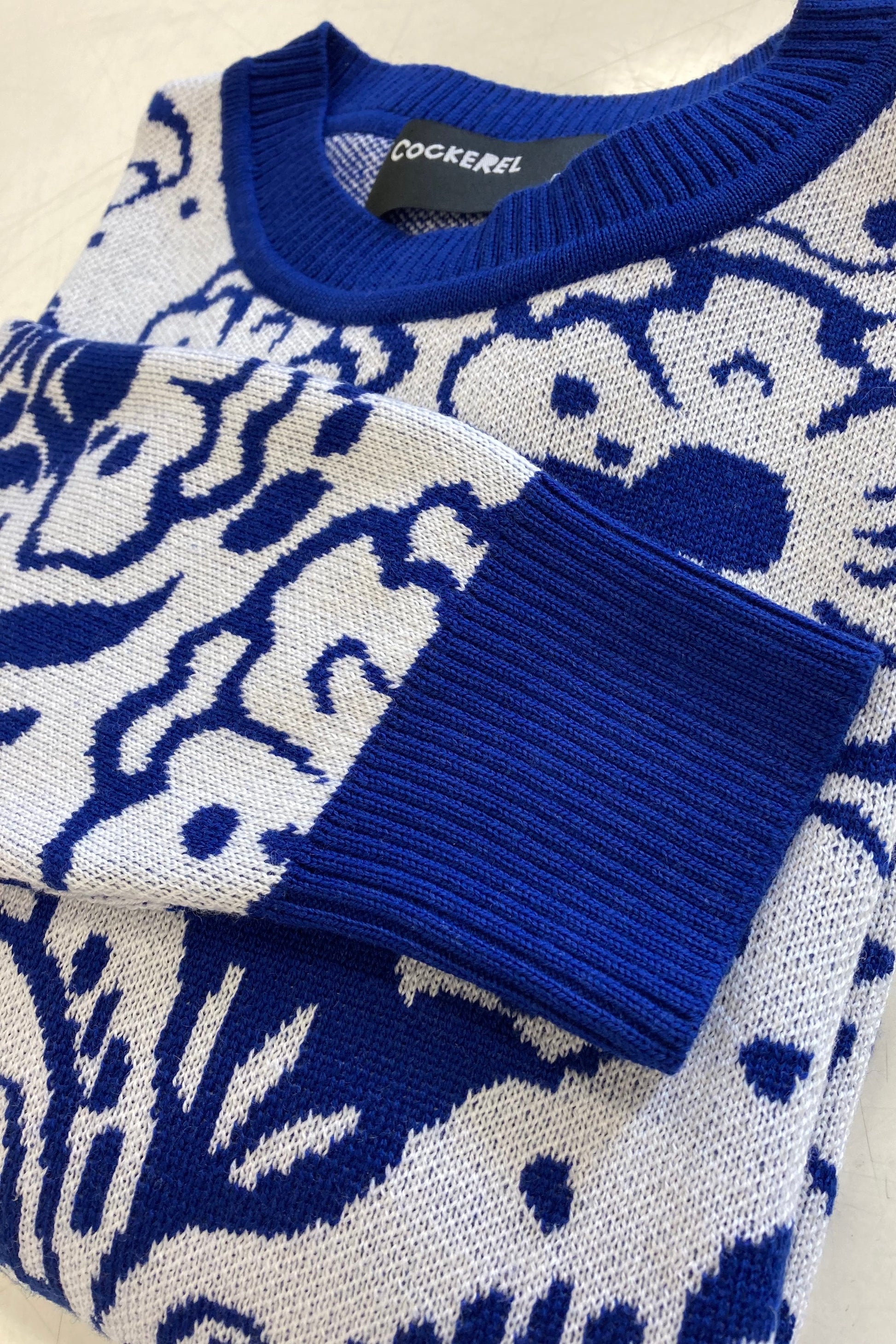 Unisex svetr s dlouhým rukávem a typickým kobaltově modrobílým cibulovým vzorem, jak ho známe z porcelánového dekoru. Materiál 100% Merino Cashwool ® Základní barva BÍLÁ, doplňková barva KRÁLOVSKÁ MODRÁ.