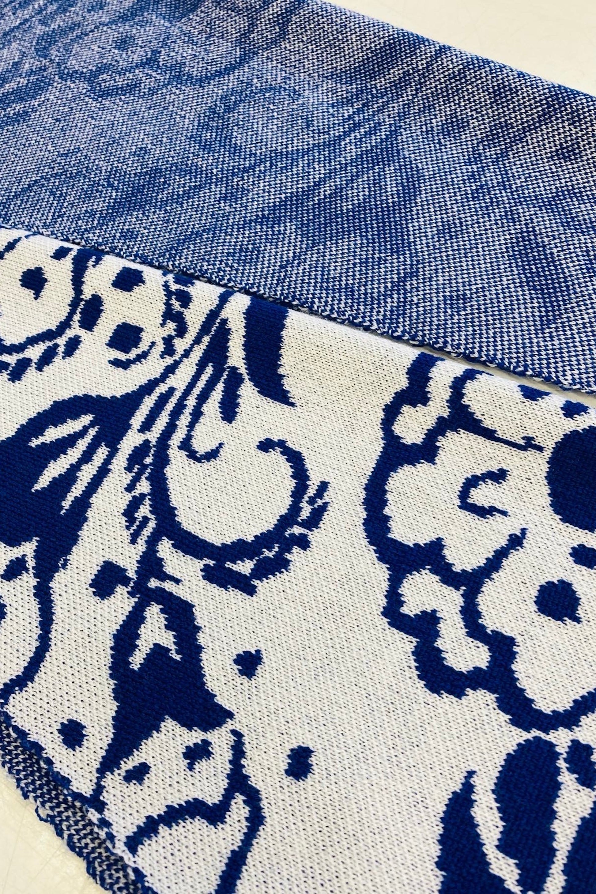 Unisex long sleeve sweater with the typical cobalt blue and white onion pattern, as we know it from porcelain decor. Material 100% Merino Cashwool ® Base color WHITE, color details ROYAL BLUE.