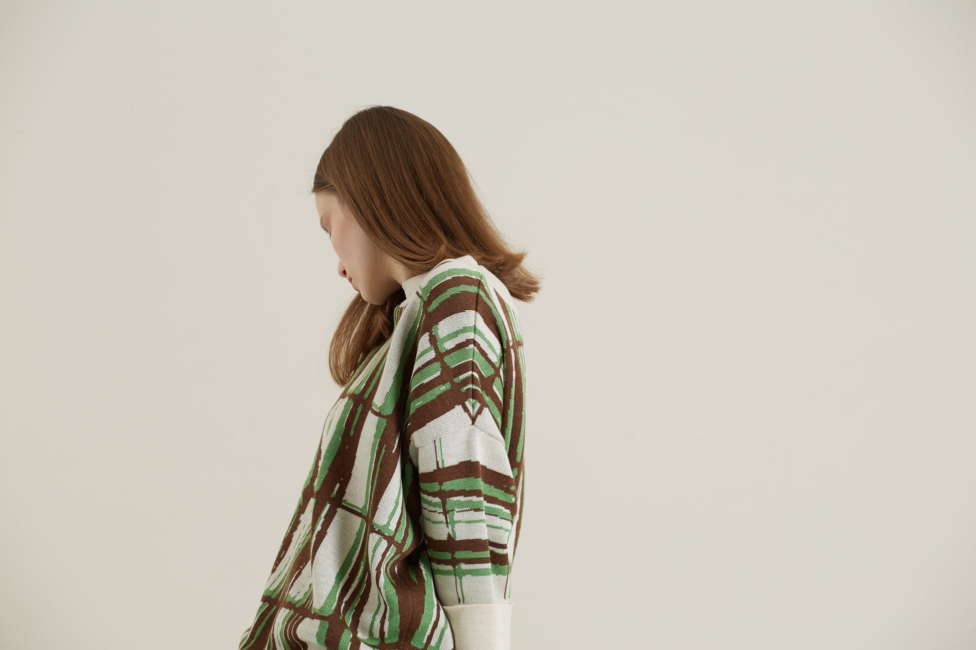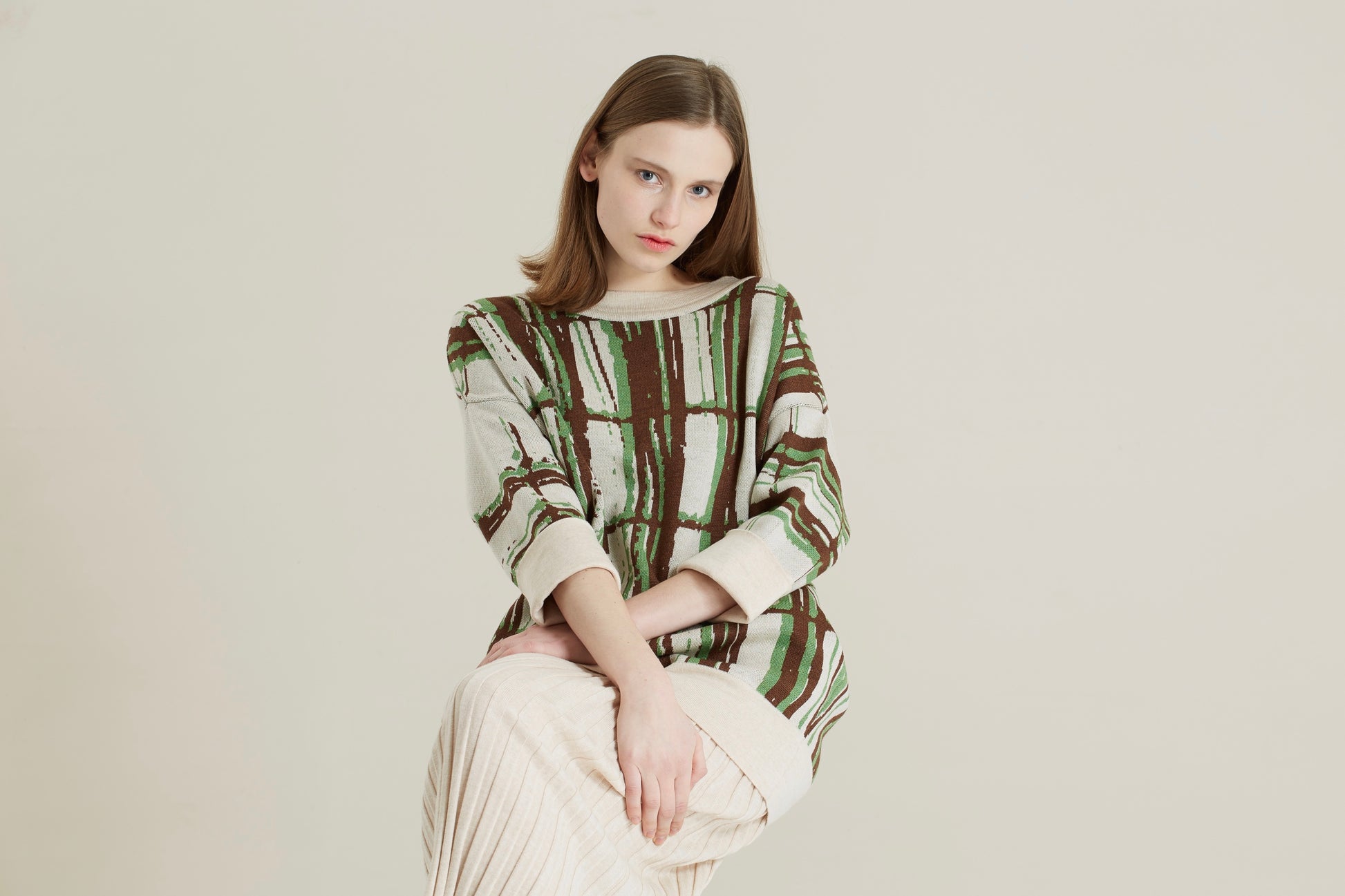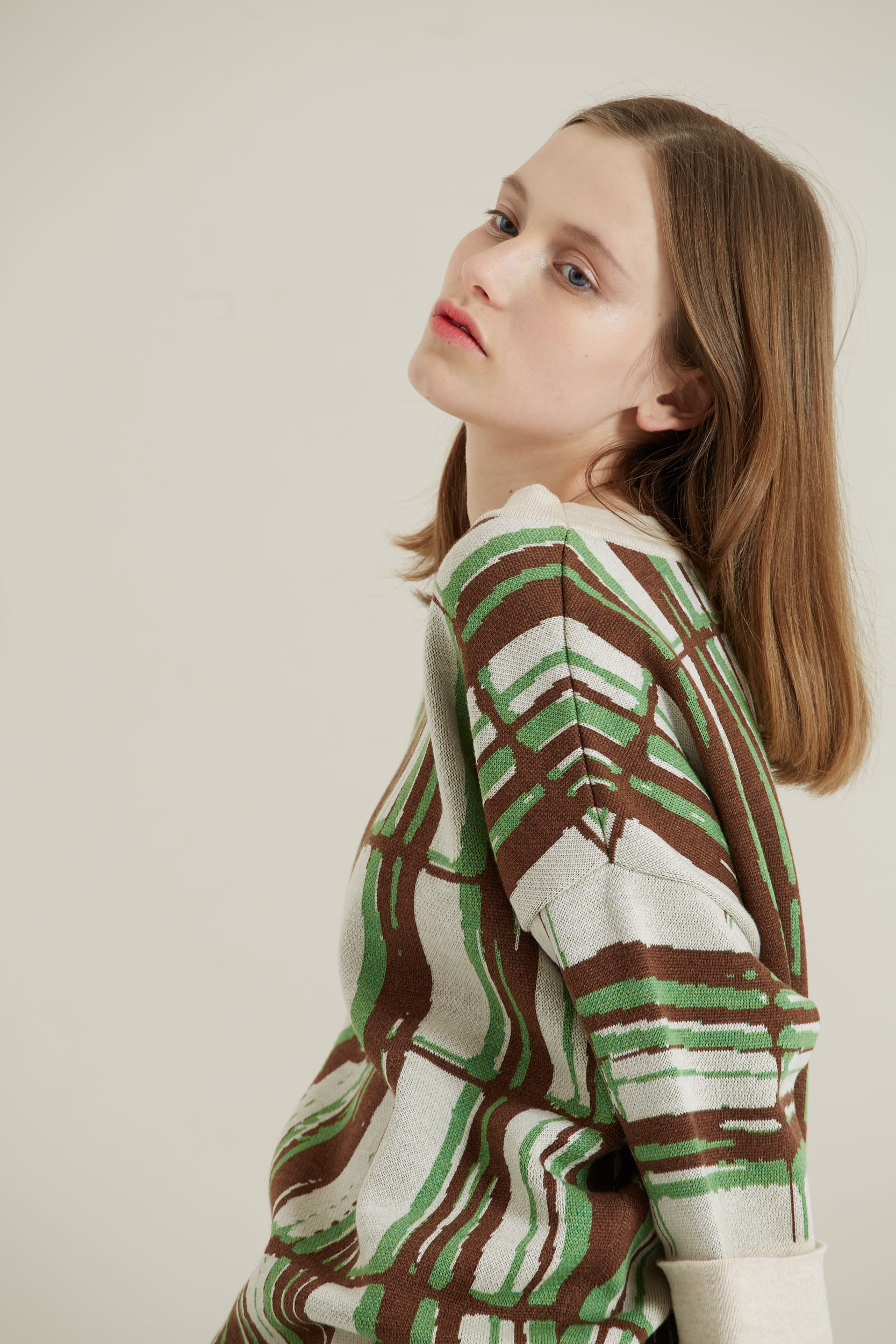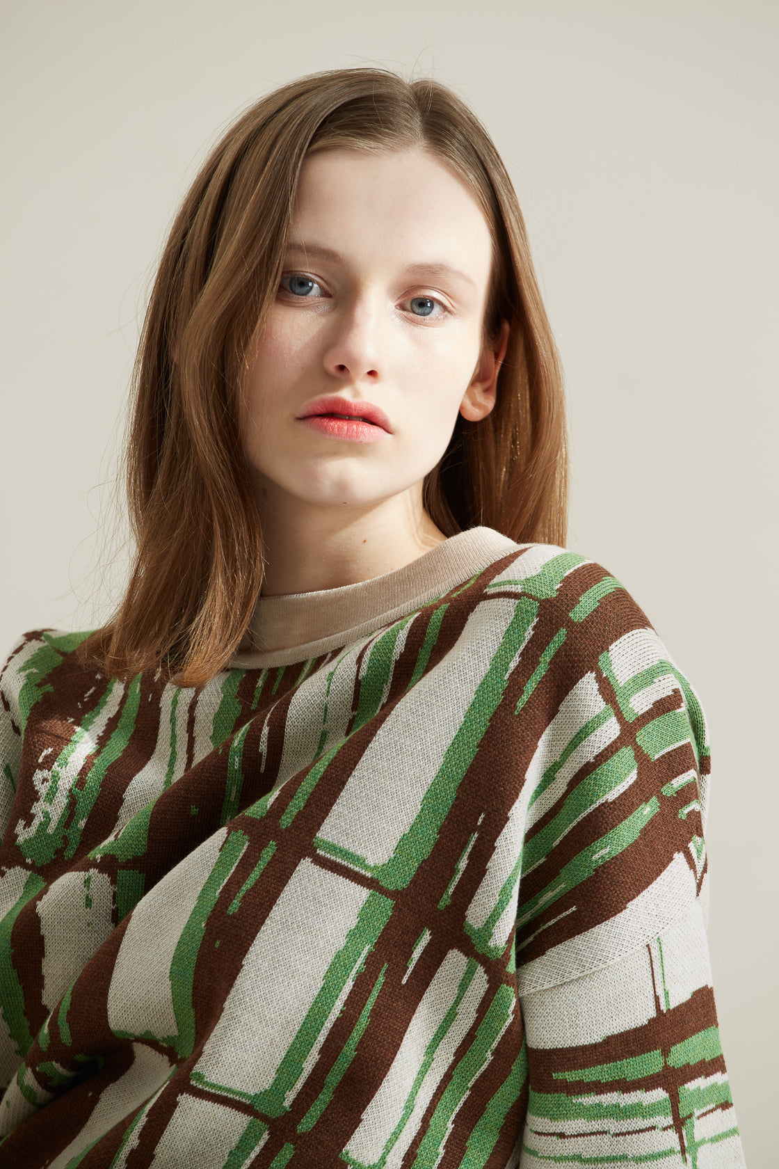 Knitted hand-drawn jumper,100% Merino Cashwool ®