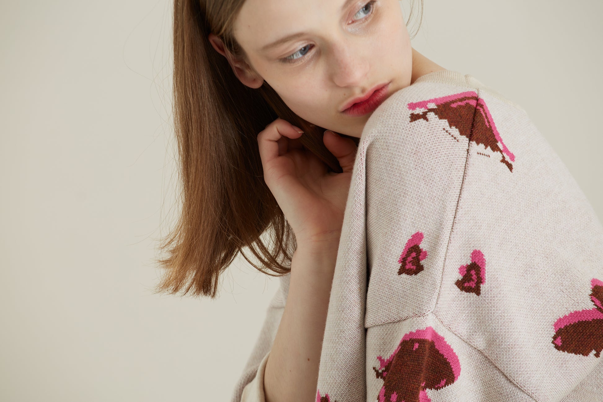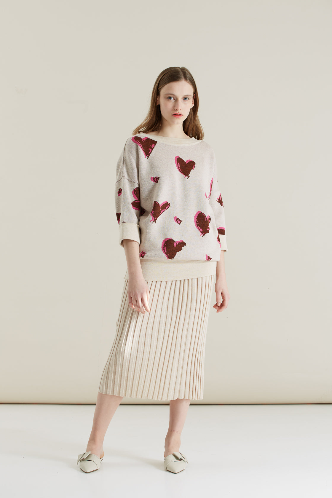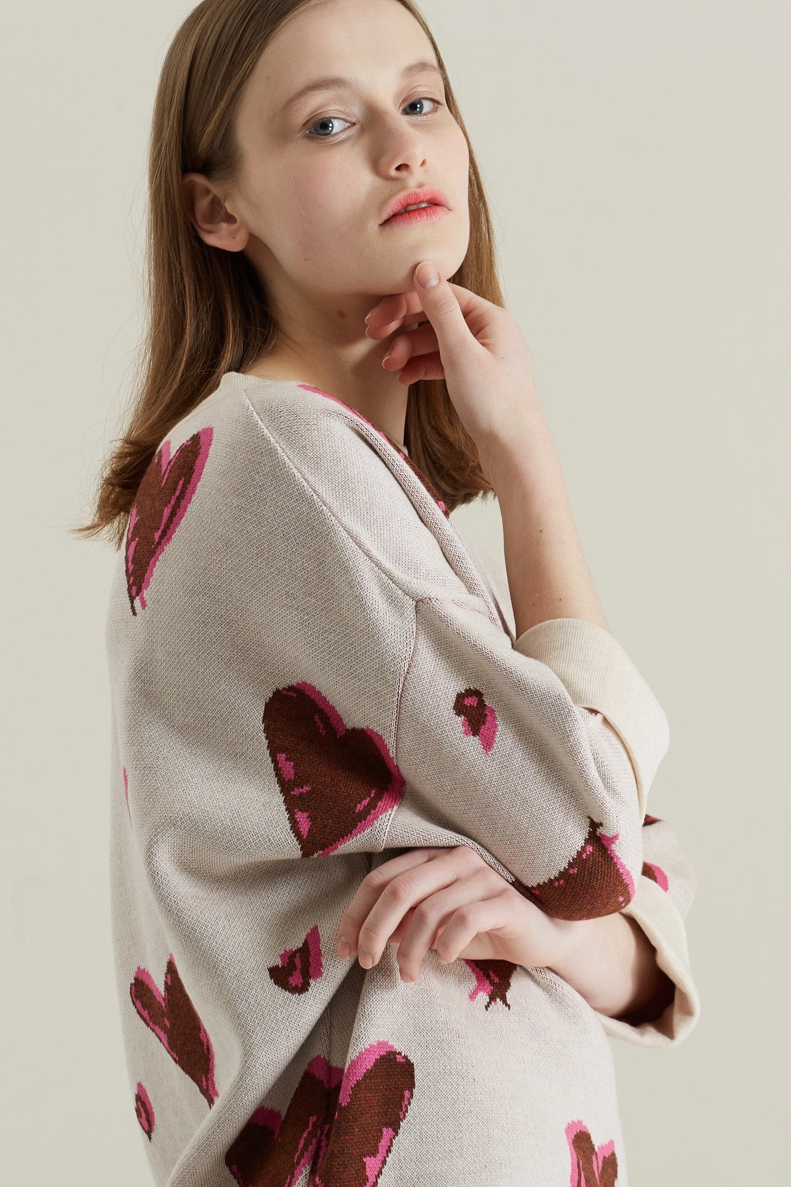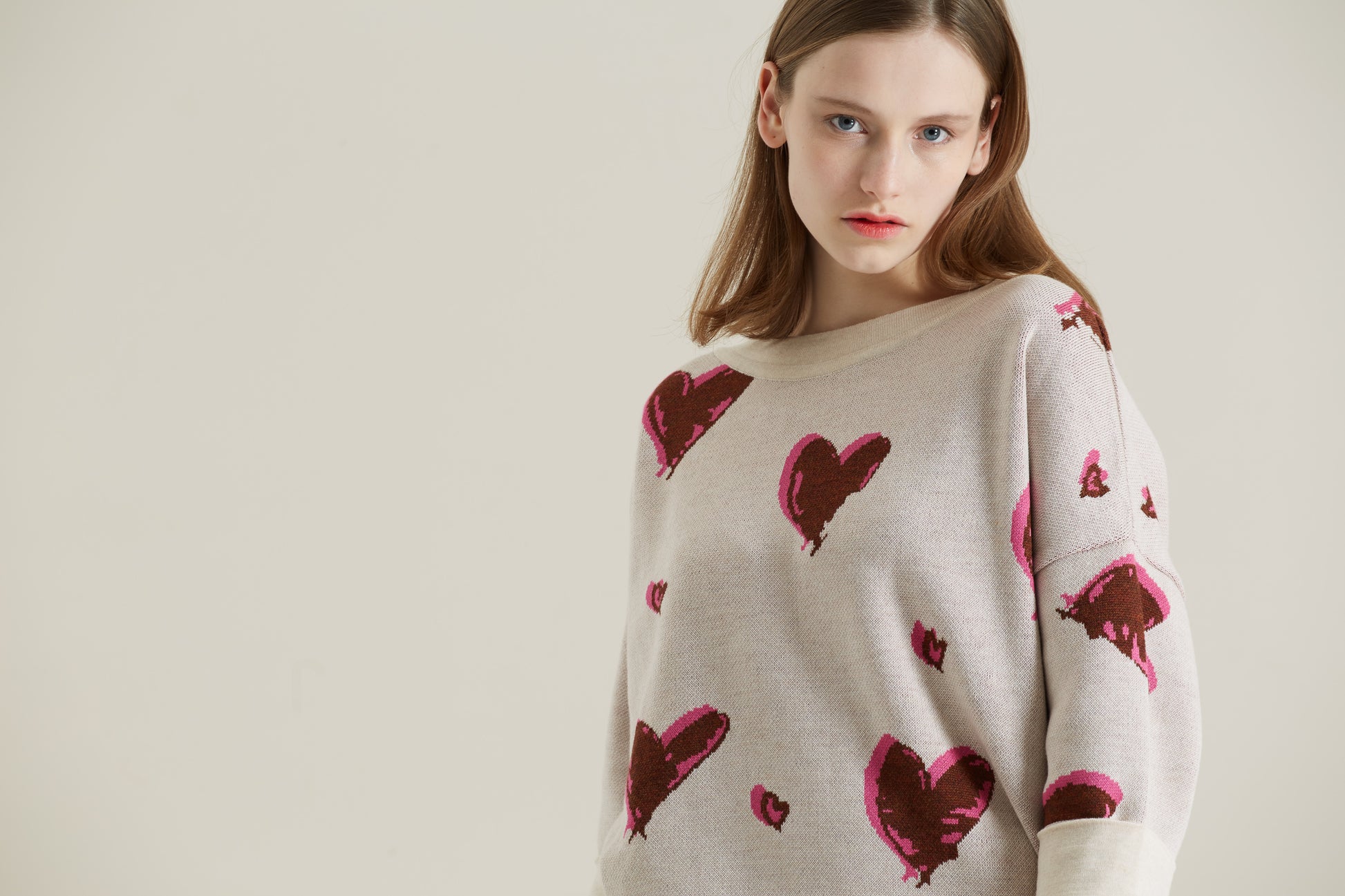 Knitted hand-drawn jumper,100% Merino Cashwool ®