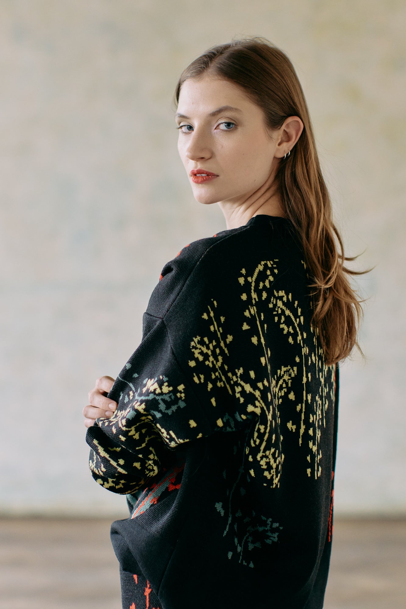 Woolen sweater knitted with a jacquard pattern, 100% Wool®Cashwool.
