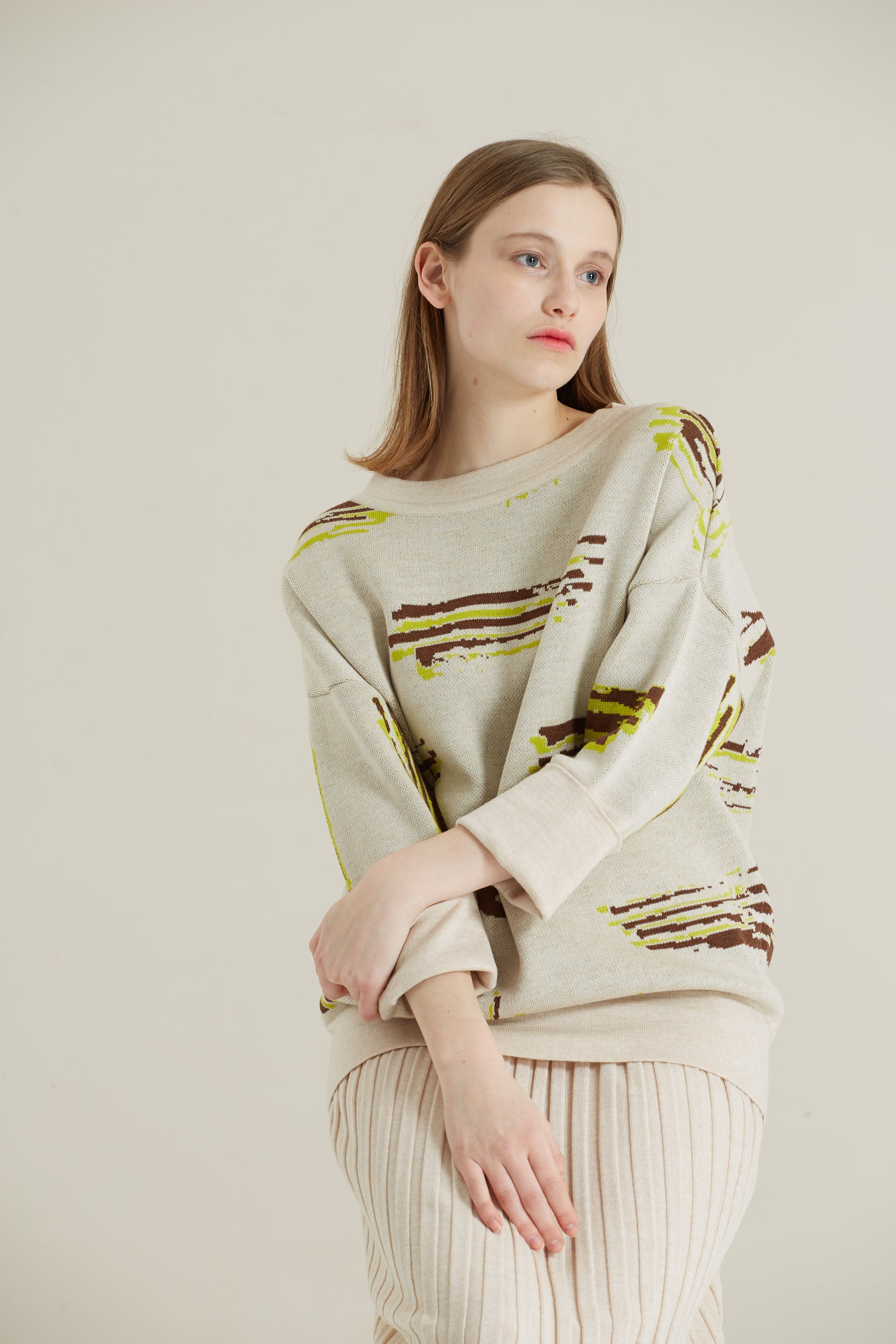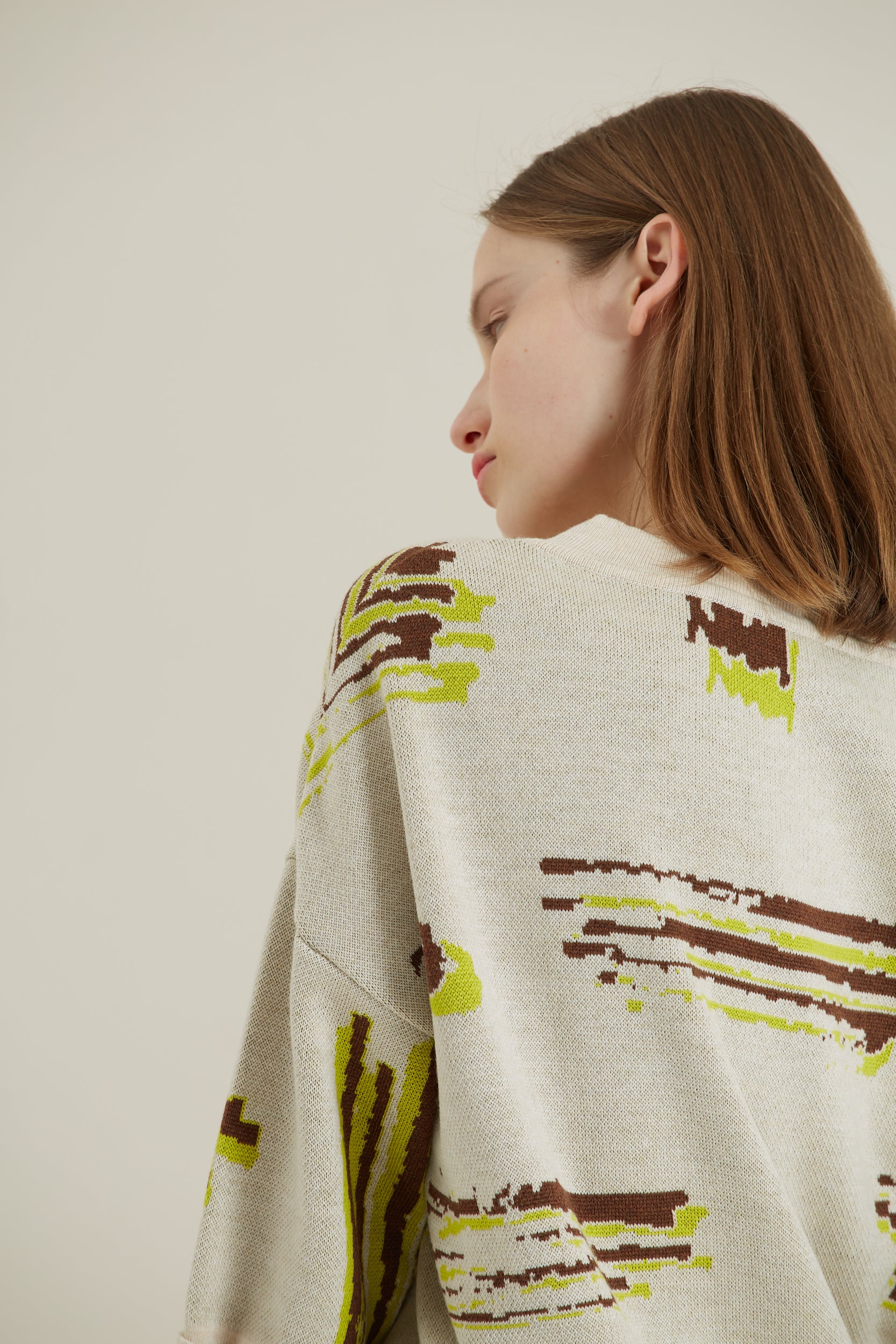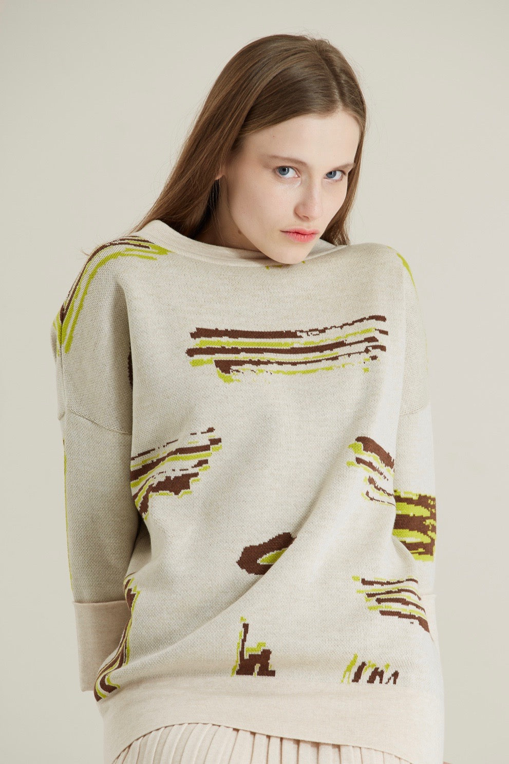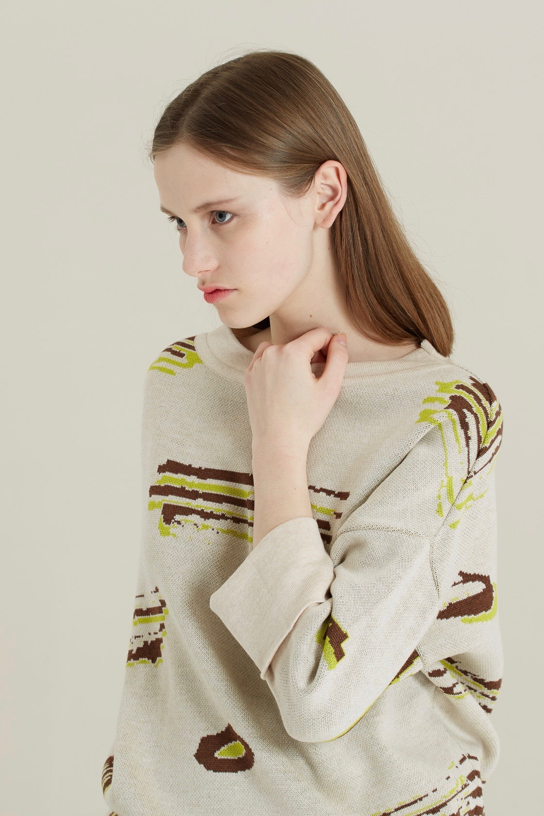 Knitted hand-drawn jumper,100% Merino Cashwool ®