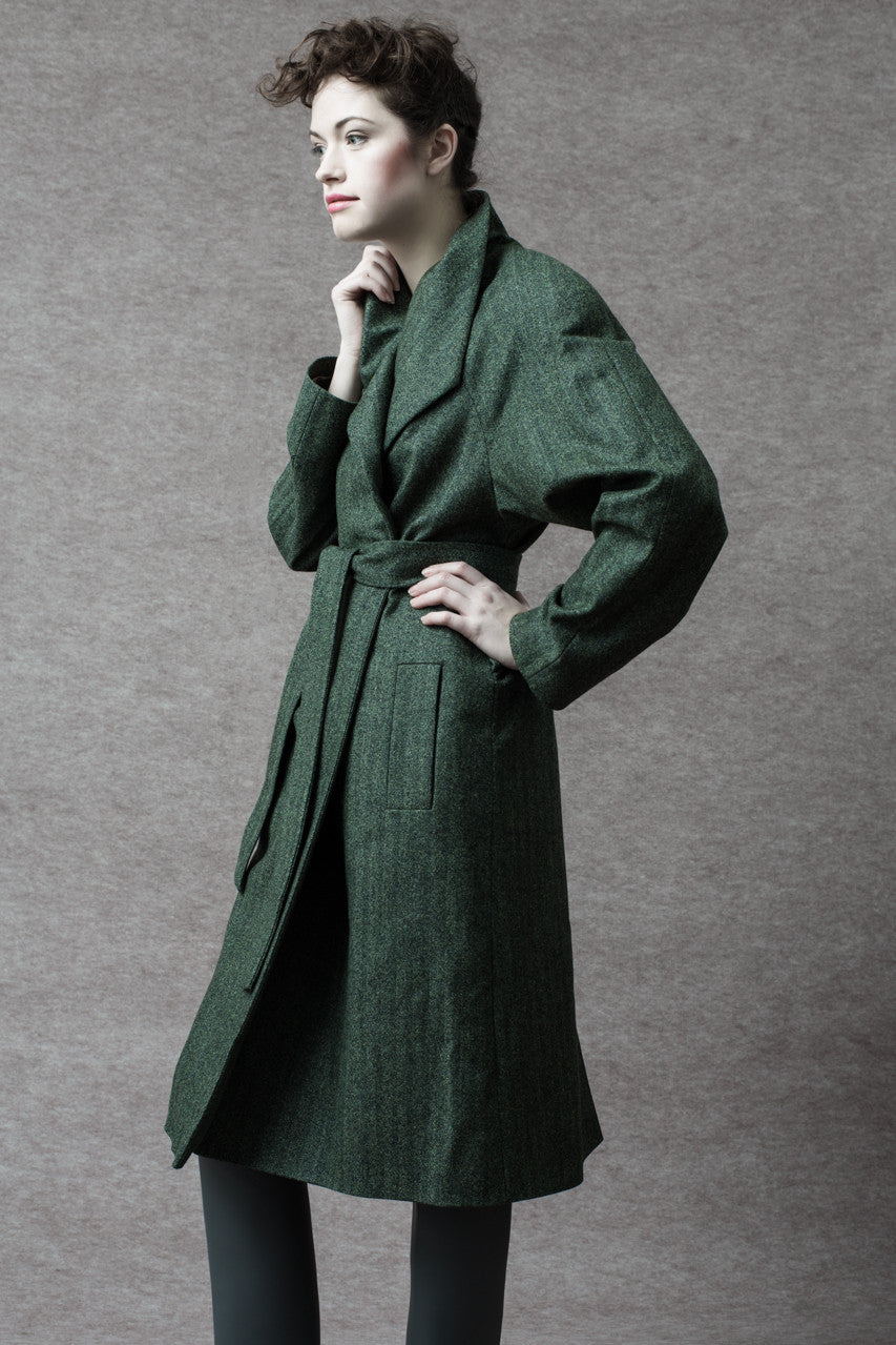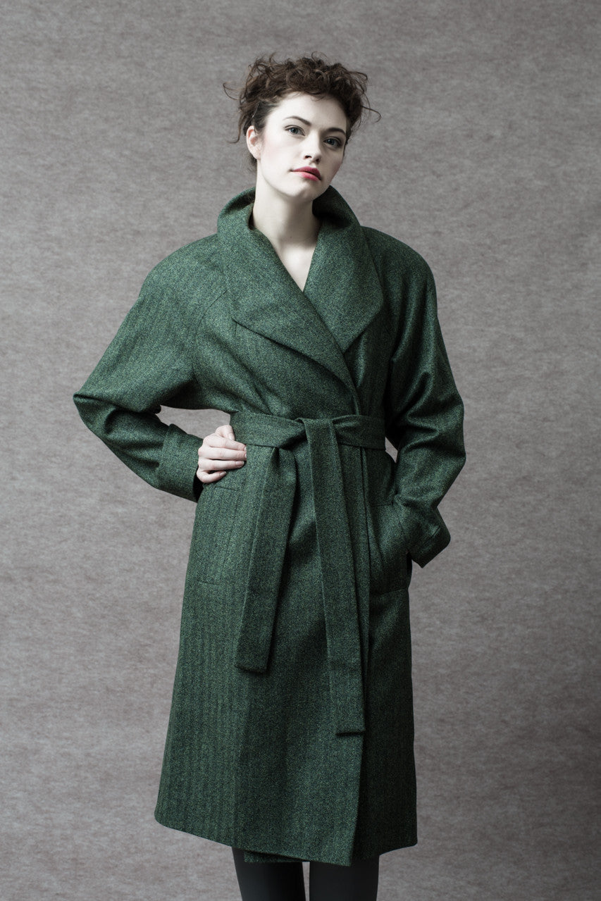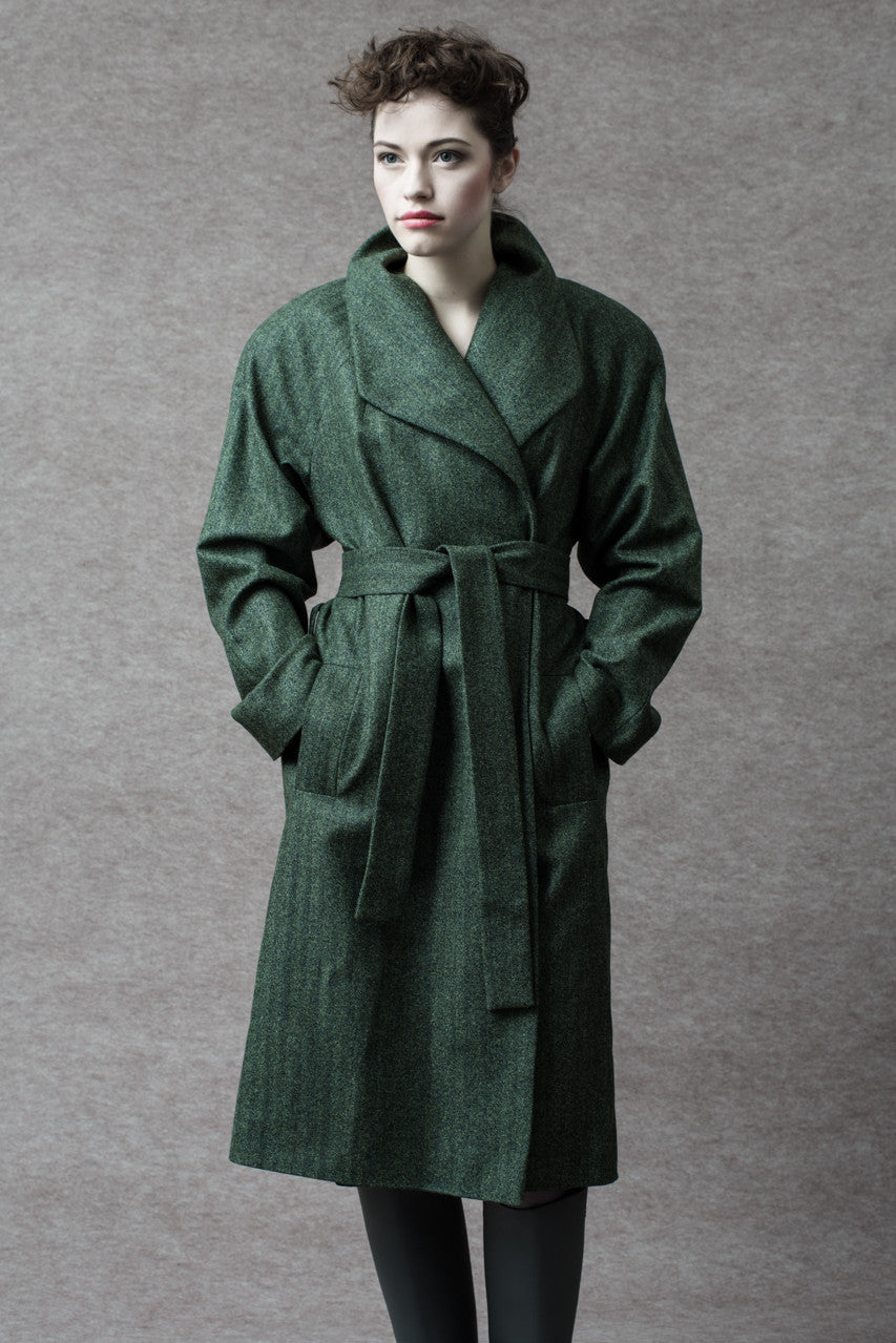 Belted Coat with lining,100% wool super130s Fratelli Tallia Di Delfino
