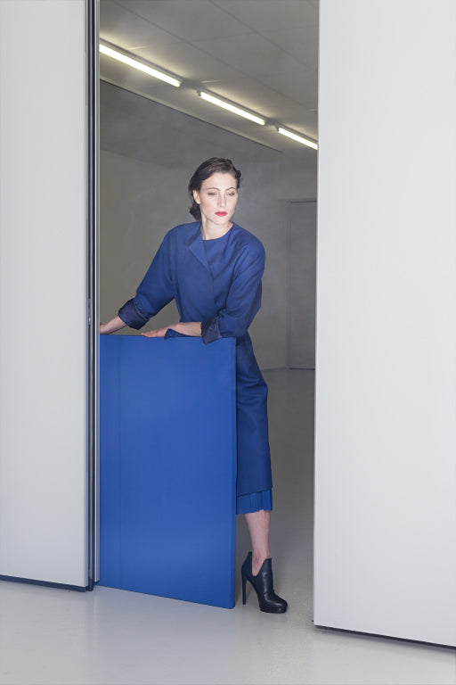 Vlněný kabát s vázačkou MODRÝ